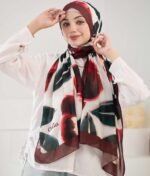 Home Printed Crepe Chiffon Scarfs Red Flory Scarf